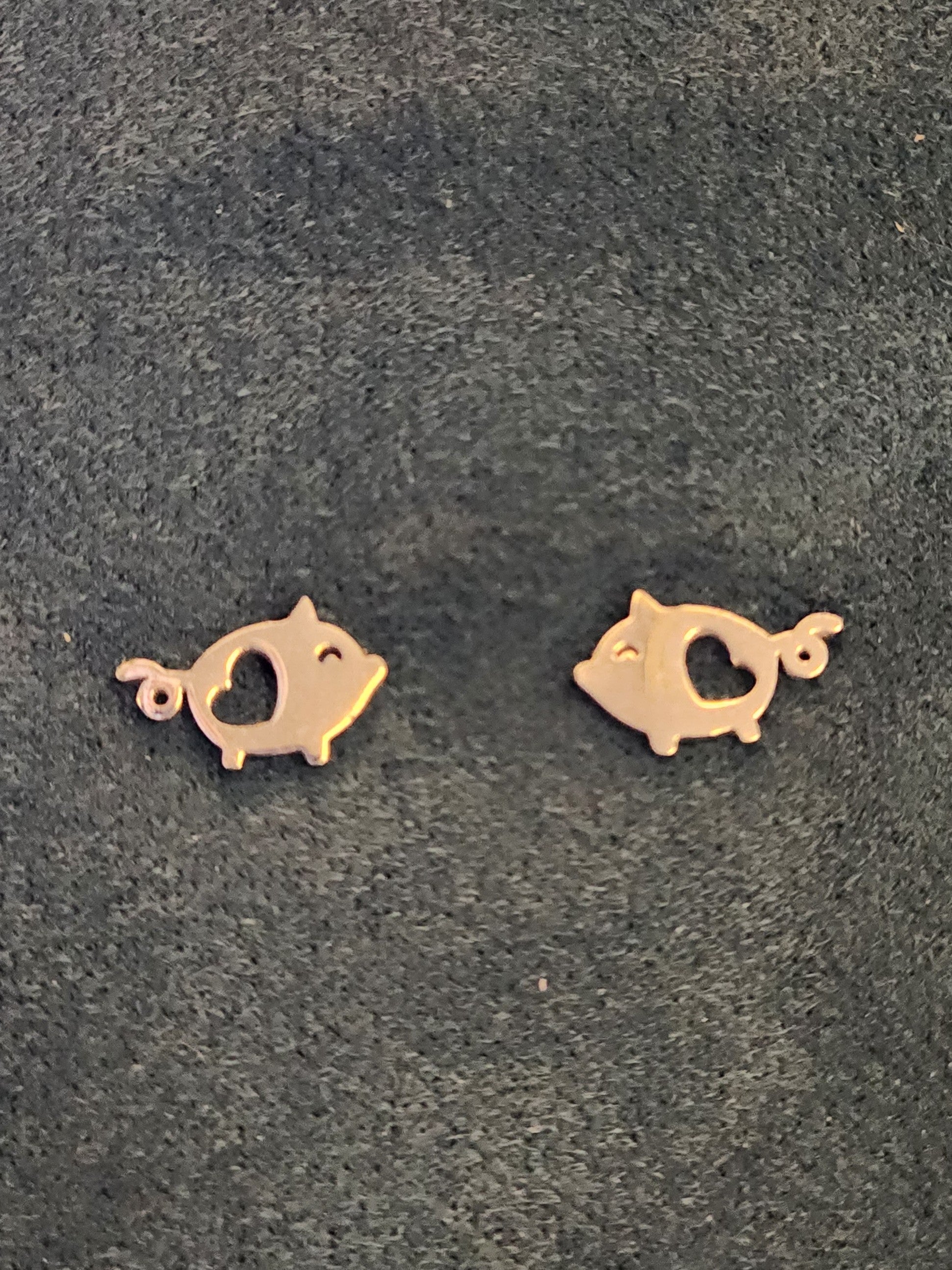 Perfect gift for the Pig-Lover in your life! Small stud earrings of piggies with little heart cut-outs. Made from Titanium Steel so they will last, these beautiful earrings are priced so you can get multiple pairs for all your piggy people.
